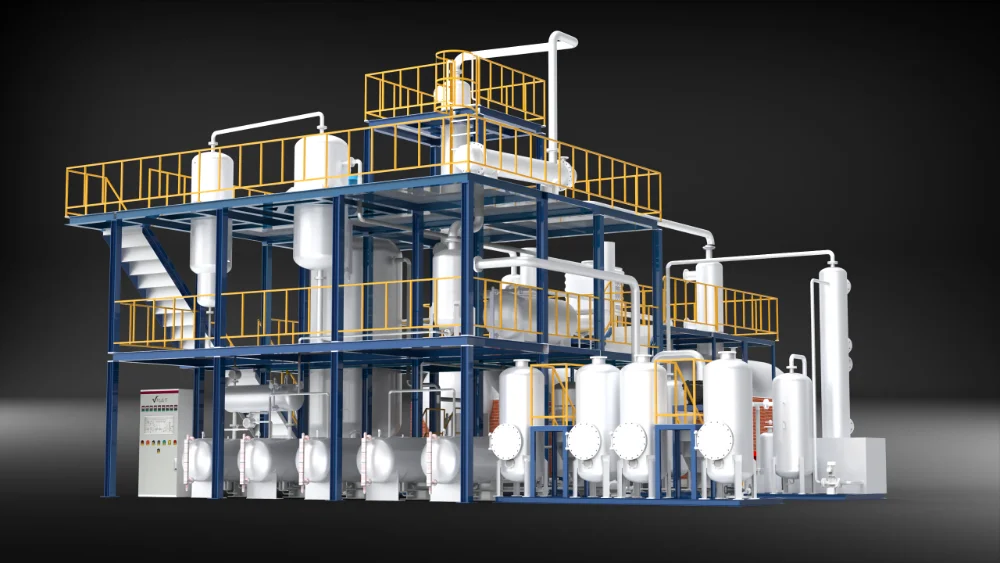 Waste oil regeneration base oil equipment can convert waste oil and grease into valuable gasoline, diesel, and base oil, thereby reducing the pollution of waste oil and grease to the environment.